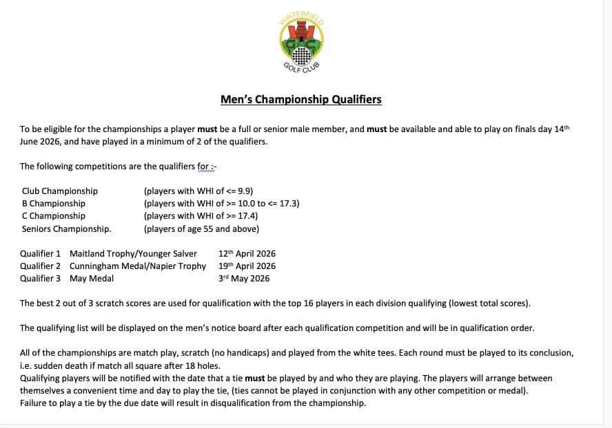 - Qualifying to be played in conjunction with August Medal (2nd August)